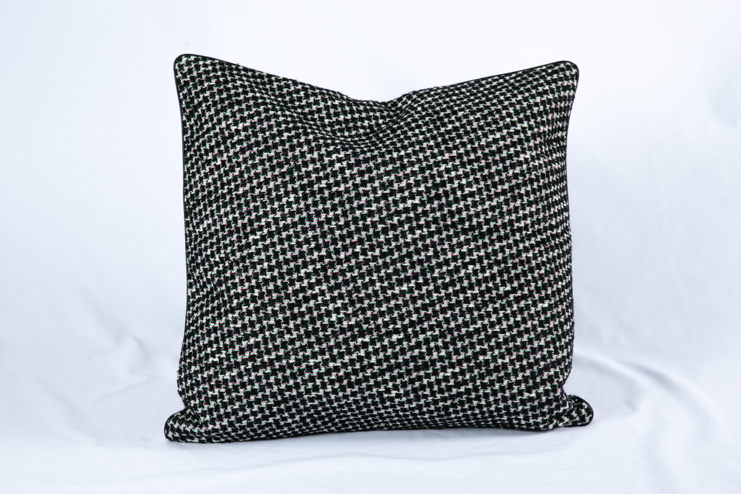 hand-sewn pillow fabricated in the mae atelier. edge detail with piping.